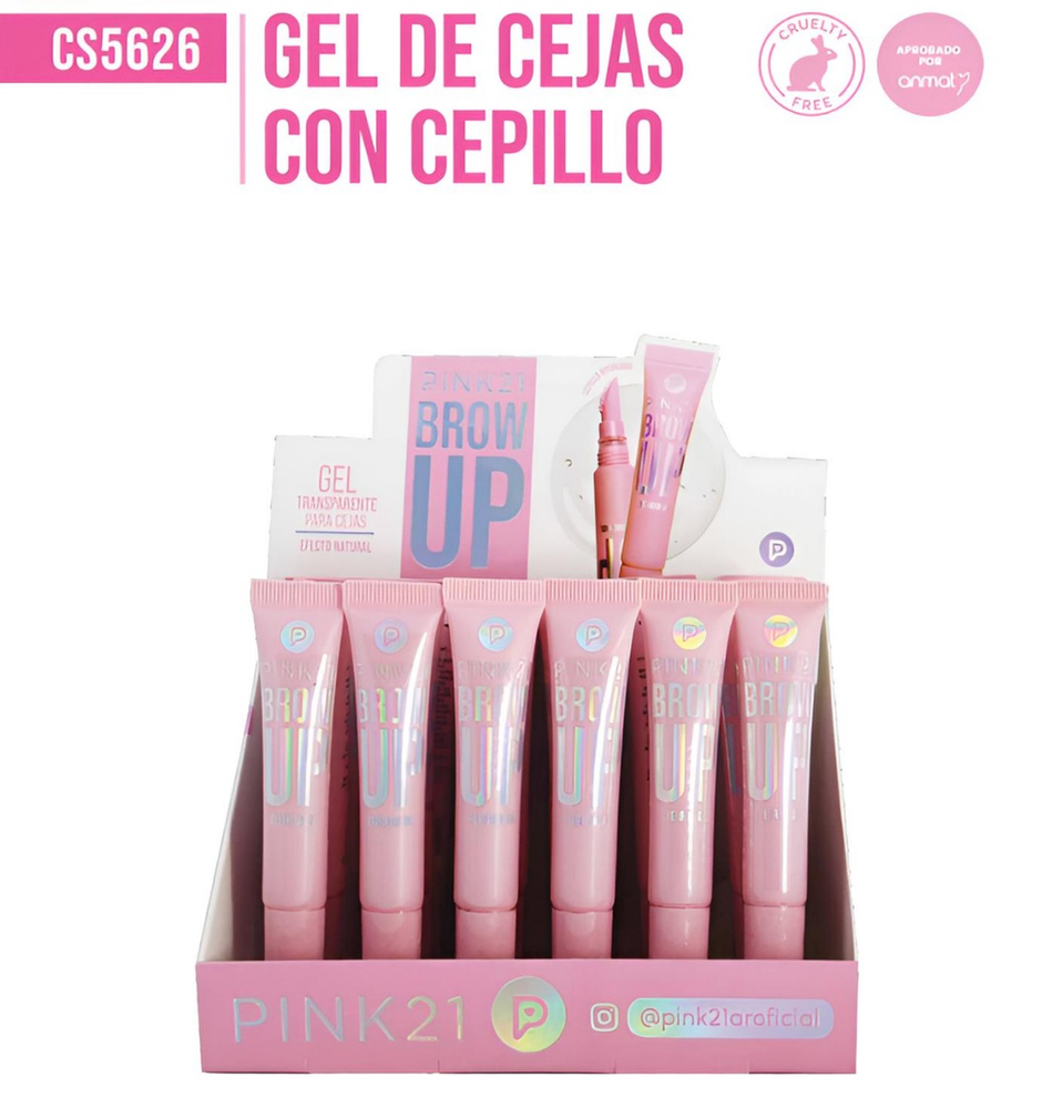 Caja x 24U. Gel de Cejas con Cepillo "Pink 21"